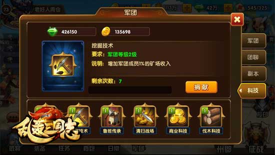 加入军团,还可以享受各种吊炸天的“黑科技”带来的福利。例如:增加军团成员的矿场收入、减少军团成员的建筑时间等,为军团成员带来意想不到的实惠,以便更快、更好地发展壮大自己!