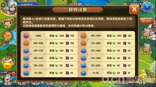 l 每天晚上10点根据个人功勋发放功勋奖励,可获得大量水晶和技能卡。