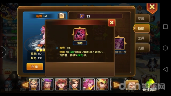 超级看脸的技能,运气好了,敌人的主力被魅惑了,运气不好只能对小兵用技能,持续时间也不长,这个技能太看人品,一般人适当加就可以了,相信自己运气的可以多加。