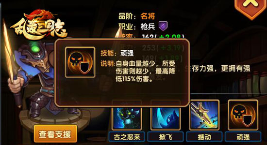 历史上的典韦,骁勇善战,世称“古之恶来”。在《乱轰三国志》中,典韦可谓有过之而无不及。生存能力强,爆发能力强,可在冲击敌方阵型时带来爆表的伤害,是《乱轰三国志》中狂战士物理肉盾型武将的典范,冲锋陷阵非他莫属。