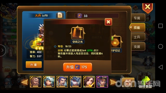 大乔是乱轰三国志最新推出的新武将,这位武将是全能型的计策中排武将,到底如何呢?今天当乐网小编带来玩家幻想埼玉的攻略,一起来看看大乔的实力吧!