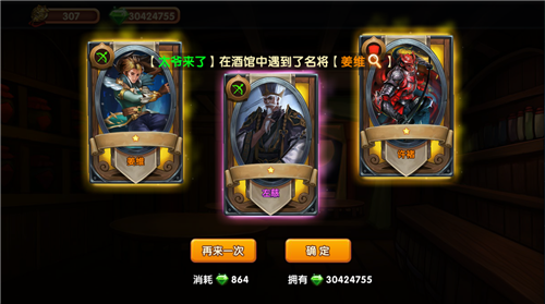 酒馆抽卡是玩家获得武将的主要来源,玩家可以通过做日常任务、攻打副本来获得酒令和水晶抽取武将,每天也有一次免费的机会。