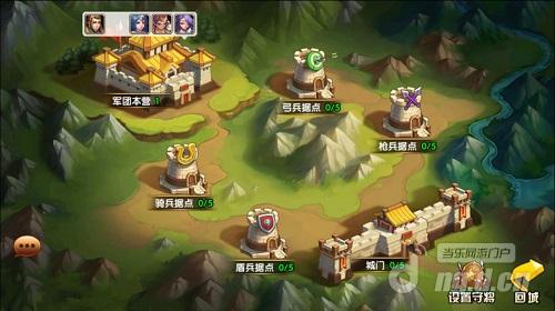 2)打破城门后可以选择攻击各兵种据点,(兵种据点有 属性加成),也可以选择直接攻打对面本营。