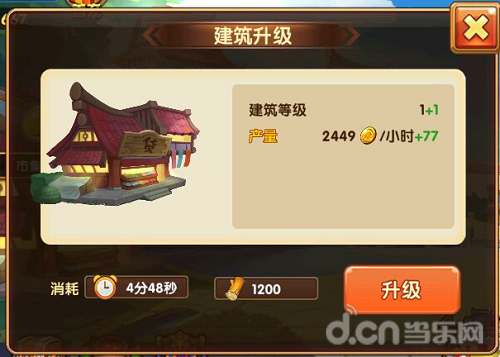 建筑的主要作用有三个,这里我只介绍其中一个,那就是,产铜币!产铜币!产铜币!重要的事情说三遍,怎么能更多的产铜币,那就是要升级,怎么更快的升级,那就需要上面提到的建筑队列。