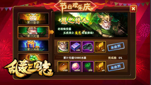 《乱轰三国志》二月二龙抬头活动有大量的超值道具真情回馈,包括全新的优质锻造石、稀有的高级装备材料、珍贵的名将录、全新武将黄忠等好礼。还有大量的超值宝箱,包括伯乐宝箱、魂玉宝箱、橙色装备箱,实惠好礼藏其中。