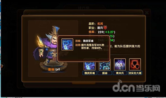 真正的神技能,召唤一个强悍的青州兵协助战斗,技能等级越高攻防生命越高,最多召唤四个。不多说了只要召唤出来,同级别状态下曹操无敌。(由于升星困难,未来发展不可预知)。