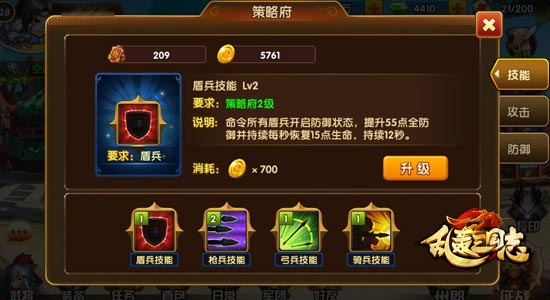 除了武将之外,玩家也不能忽视对士兵的培养。为士兵不断升级,可提升实力。同时,在策略府中,可研究士兵技能,为士兵技能不断升级,也可以提升实力。而所消耗的道具也大部分来自于征战副本。