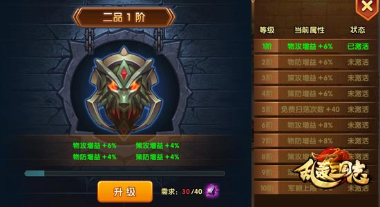 在《乱轰三国志》中,还有一个特别的系统——授印系统,玩家使用授印碎片对授印进行升级即可全面提升战斗力。其升级所消耗的道具同样是来自于征战副本,玩家朋友们千万不要错过啦。