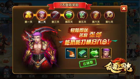 在《乱轰三国志》中,想要免费获得武将,最简单直接的方法就是登陆游戏,在7日登陆奖励中,将有名将张郃等待你的招募。完全免费,赶快来领取吧!