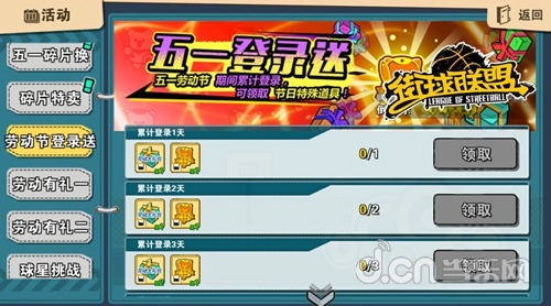 除了登录奖励以外,《街球联盟》球员集训、公开赛、街球大冒险、街头争霸挑战等众多副本关卡也将加入节日双份奖励。玩家除了可以获得常规道具礼包外,还能根据挑战完成次数获得劳动大礼包以及海量钻石。除此之外,在更衣室中完成装备升级、私人藏品升级、装备升星等任务后,还将加码获得对应的礼包福利。