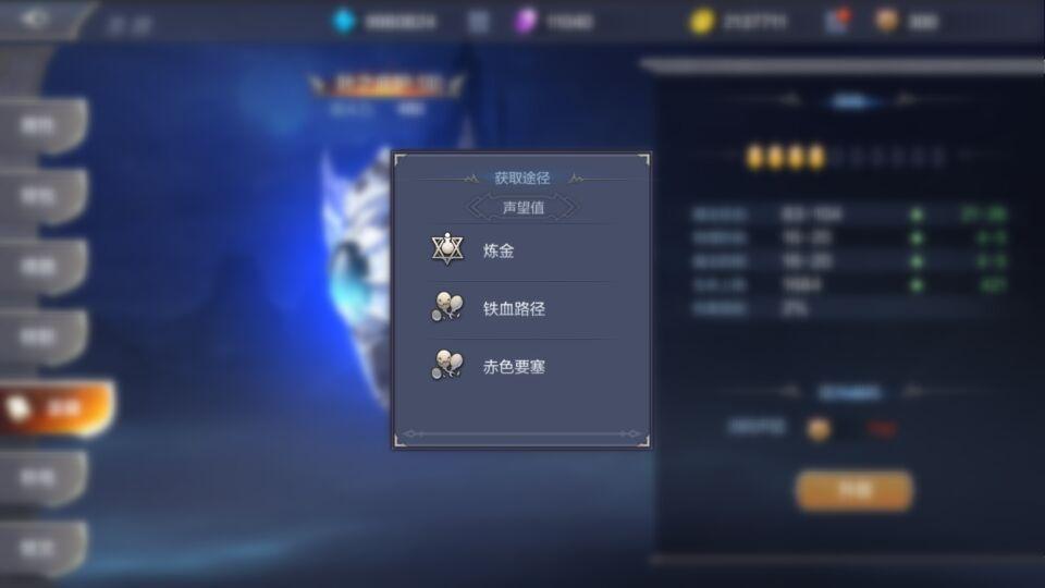而声望值的获取途径有三种:炼金,铁血路径,赤色要塞。