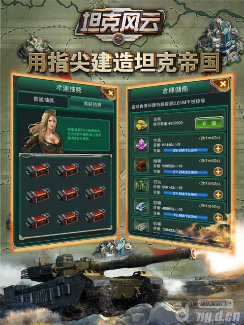 《坦克风云》为喜爱军事战略游戏的玩家提供了一个最富有个性的舞台,让我们一起在战火纷飞的世界中寻找激情与荣耀,打造一个只属于自己的军事帝国吧!坦克大战,一触即发!