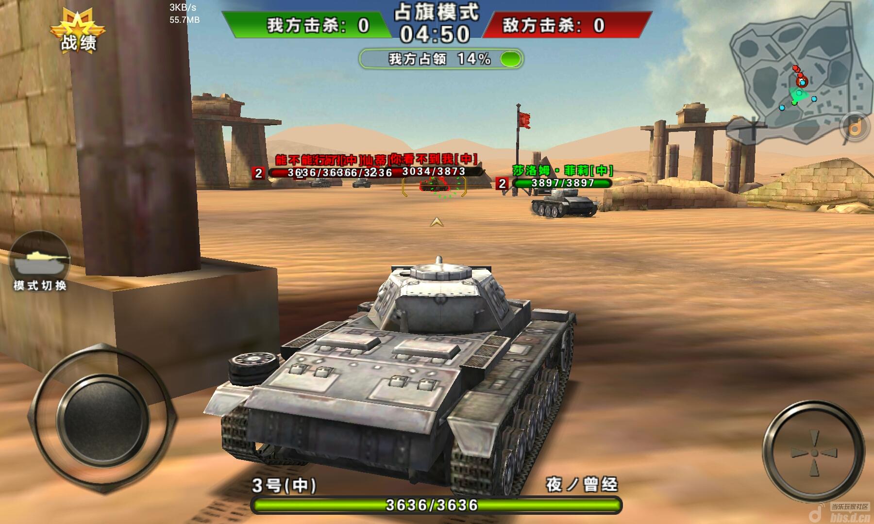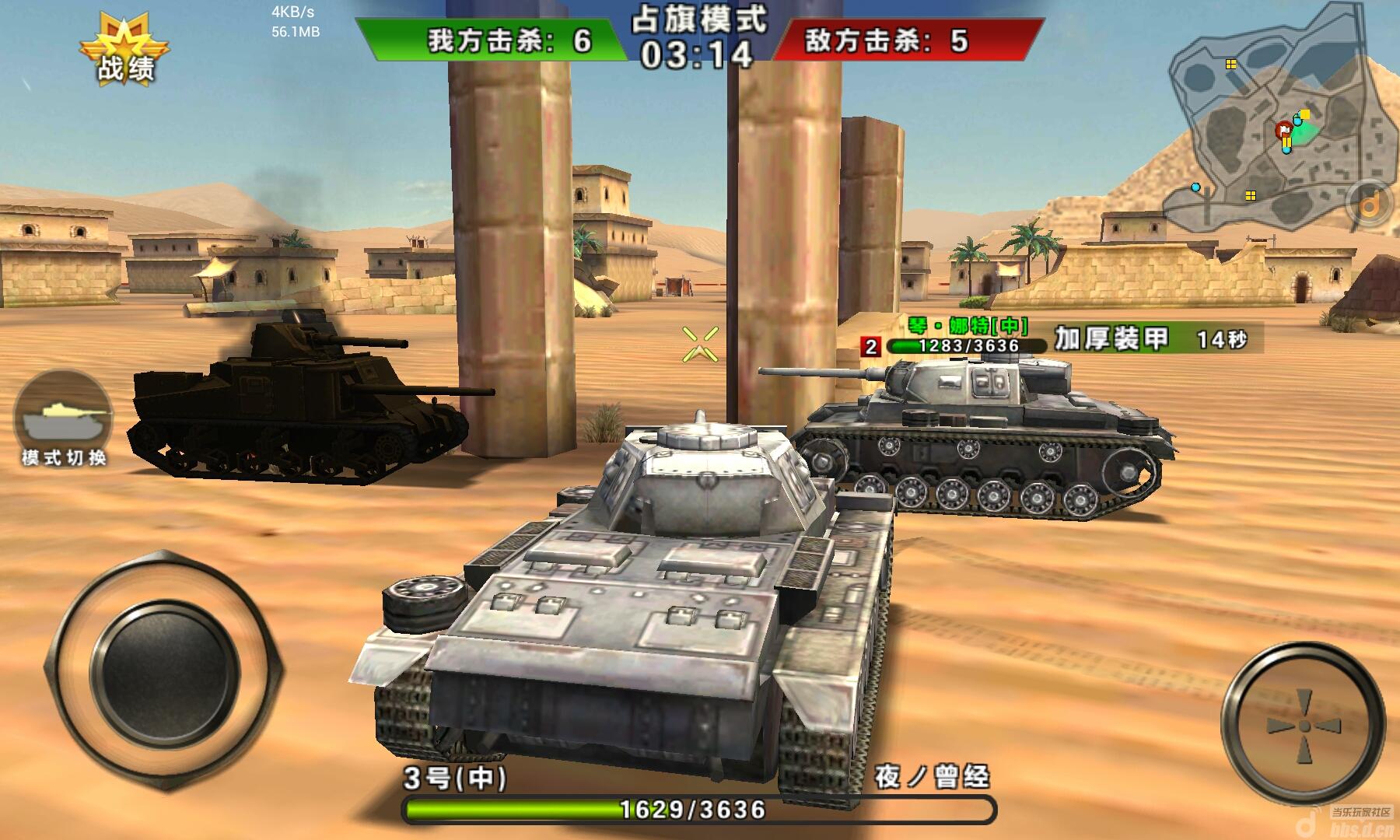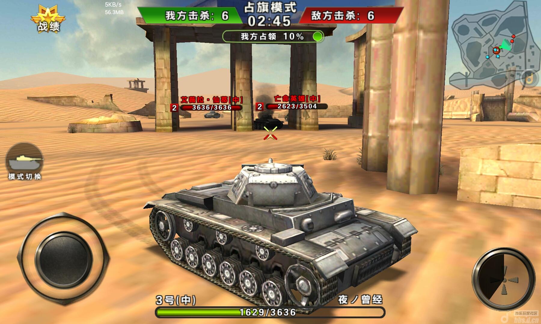 全球首款二战题材坦克TPS射击手机网游,全3D建模打造热血坦克的世界,完全遵照真实历史数据,完美还原苏、德、美等二战主参战国100余种王牌坦克原型,最高支持5V5大战场,采用了摇杆控制战车方向+划屏控制准星的操作方式,符合人体工程学设计。依托强大的即时动态光影演算,游戏中的开炮火焰、金属反光、昼夜变化等均遵照真实环境光效,堪称目前移动平台画面表现力最强大的3D战争手机网游。