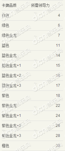 注:大大姐突破+3所需30领导力当然除了这些外,还有一些活动的英雄卡牌,比如小金龙、南瓜瓜一类均为50点领导力。