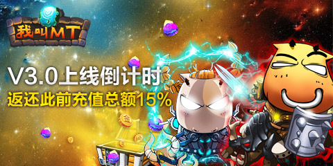 《我叫MT》全新V3.0安卓版本将于近期更新,更新完成后将对安卓所有玩家进行15%的累计充值返还,小伙伴们别惊呆了,赶紧充值吧!充值越多返得越多!