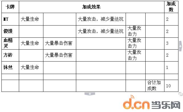 经多方面分析,目前2.5版本加成效果,此5张卡牌合计加成数量高达10,平均每张卡牌的加成属性达到2,尤其傻馒,方砖,血精灵属于DPS炮台,血精灵的攻击能力见下图: