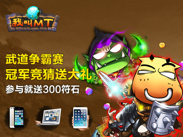为感谢广大MT玩家对本次《我叫MT》武道会的大力支持,同时让更多不能到现场的玩家能参与到武道会活动中,卓越游戏将同步启动“《我叫MT》武道会冠军猜想”活动,只要参加完本次活动的玩家就能获得300符石奖励,300符石直接到手。