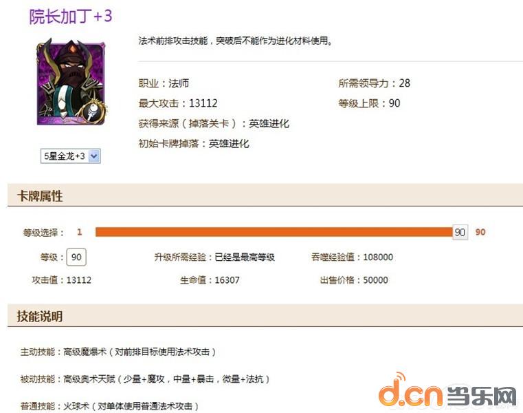 推荐本卡的理由:自从版本更新后,法系的魔爆术和物理的旋风斩都得到了很大程度的强化,可以注意到都是对于敌人前排的AOE伤害,所以加丁是一个很大程度得到强化的角色。还有一点他是血精灵法师突破成紫卡的必须卡牌,相信血精灵法师喜欢的人很多,人物的能力也是非常的强力,不管是PVE还是PVP都是值得肯定的角色。