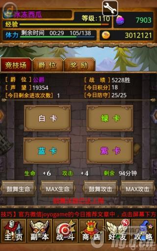 【进攻场、时间】:全天都可以,最好是JJC人最多的时候,早上7点-9点时间段人多最快2分钟就可以守满 鼓舞生命+6 攻击+4