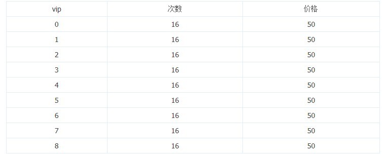 16管体:体力购买次数提高,价格降低 ,出售的12管体力,对应关系如下: