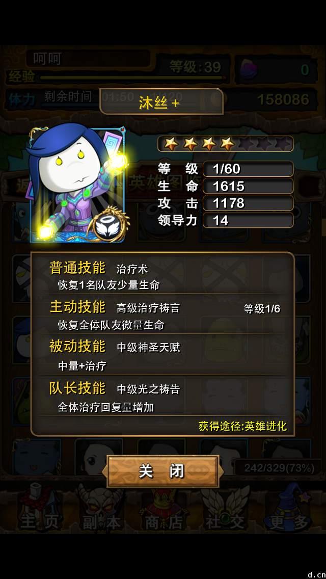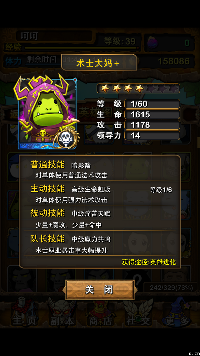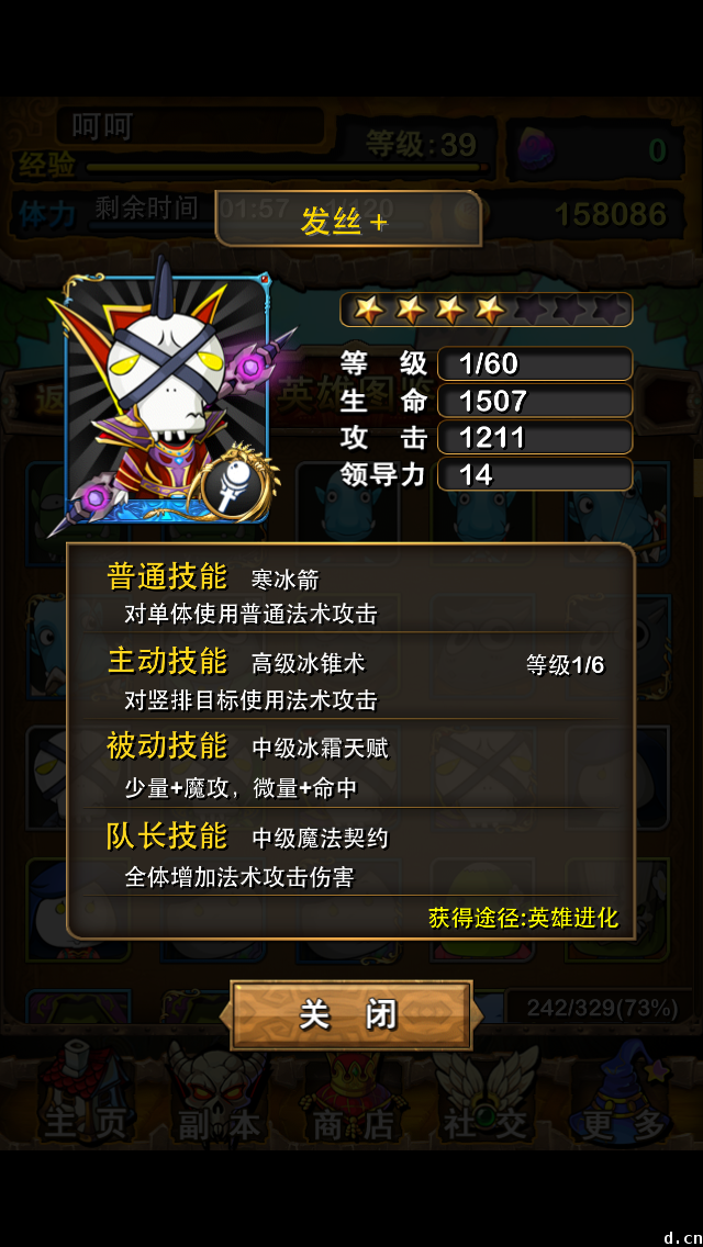 特点:全法师系属性成长最好,没有之一,队长技能更全面,适用于所有所有法术攻击,2技能竖排攻击高,适应等级、有队友加成情况下秒掉2个不是难题;