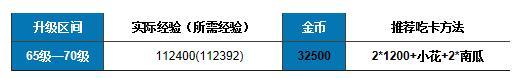 蓝卡(60级到65级):到达突破+1阶段后,此时总共需要经验值83592点,推荐采用2x2000+3个向日葵+1个南瓜的方法,从而能够保证吃卡最优化。