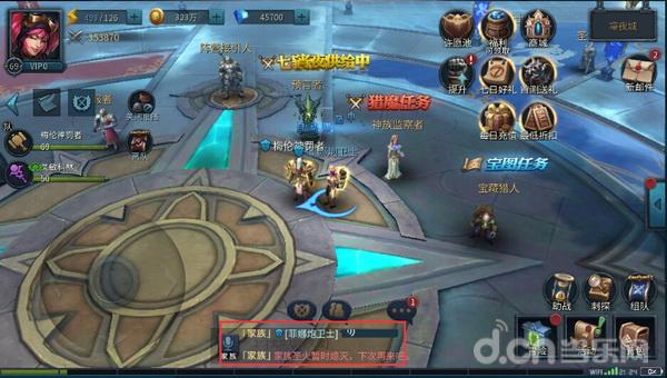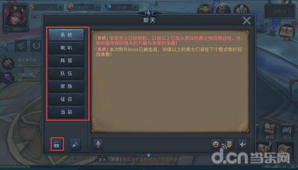 聊天界面总共分为7大聊天频道,分别共不同玩家群体,显示不同聊天内容,聊天频道可锁定,例如在家族频道聊天,仅有家族玩家可查看并回复。