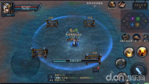 采集期间,家族成员可以前往“王者之地”地图指定资源采集区采集资源。并随时在本方安全区的NPC处,上交资源使本家族的采集度增加。