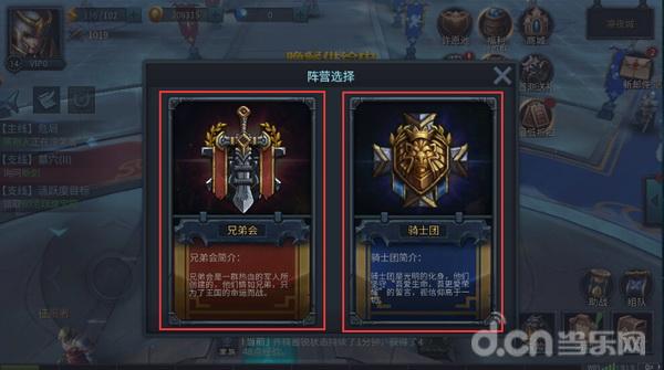 阵营分为两大阵营,分别为兄弟会,骑士团,选择你想加入的阵营吧。