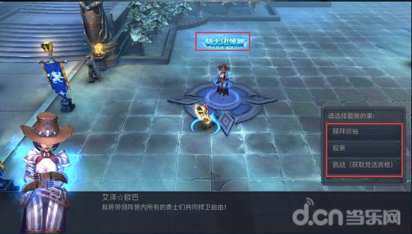 玩家每天可前往阵营领袖NPC处,进行领袖膜拜、投票、挑战,膜拜可获得经验,金币,荣誉之徽等。