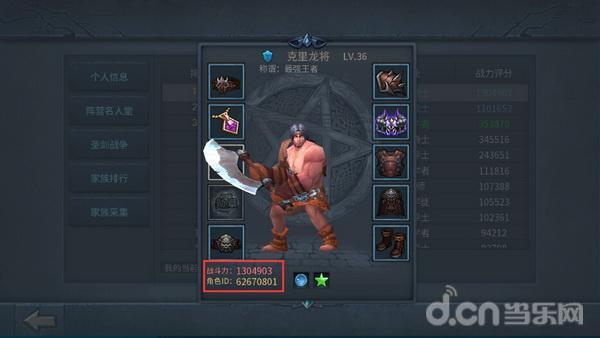 点击排行榜玩家名称,即可显示该玩家当前战斗力,角色id等相关信息。