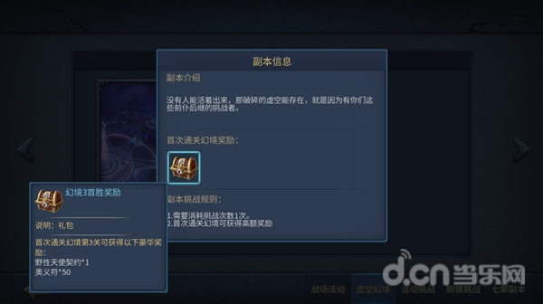 幻境3是目前开放的幻境副本中的最后一境,相对于前两关还是比较难的。进入的方法同前面两境,依旧是:组队—虚空幻境—虚空·双生魔王。当然,大家必须通关了前两境,才能解锁第三境。