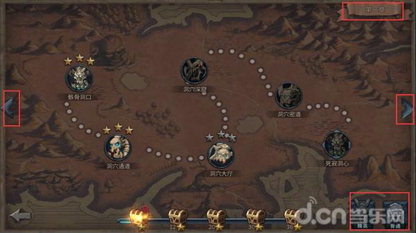单人副本按照通过难度与奖励分为“普通”副本与“精英”副本,点击右下角图标进行难度切换,点击左右箭头切换副本章节。