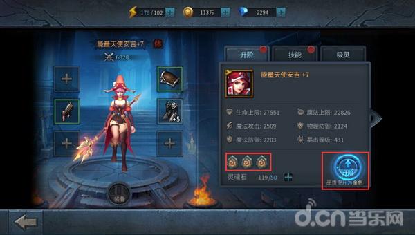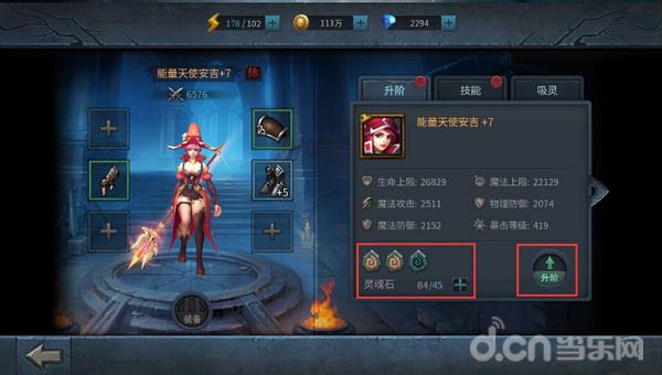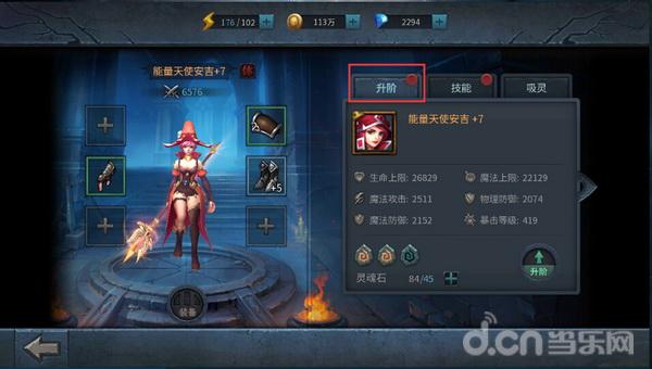 当拥有足够的灵魂石时,点击升阶按钮对英雄进行升阶操作。对英雄进行升阶操作会大幅对提升英雄属性。