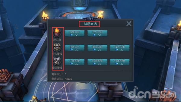 玩家可利用击杀怪物获得的积分或钻石,在商城购买buff加成,提高自身属性或烽火塔属性。