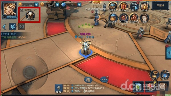 进入以后会出现在角斗场匹配大厅,这时你就会发现角色头像右边的图标变了。