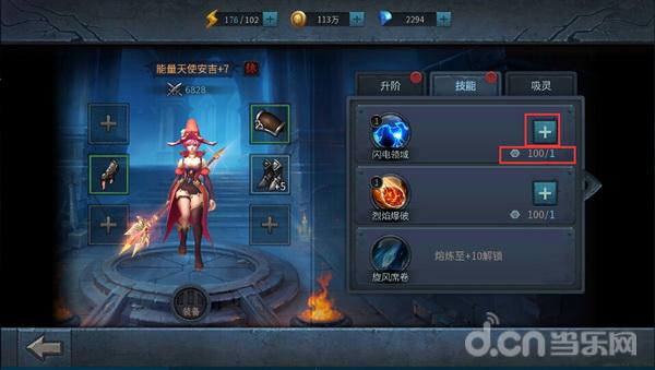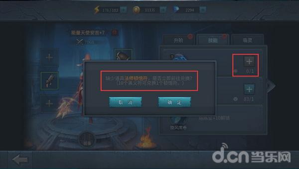 英雄技能通过消耗奥义符来提升等级,当拥有足够数量的奥义符时,点击右侧“+”按钮就可以对英雄技能等级进行提升。