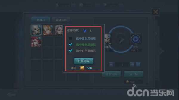 点击批量分解按钮,可以勾选品质来选择想要进行批量分解的灵魂石或者装备,进行批量分解。