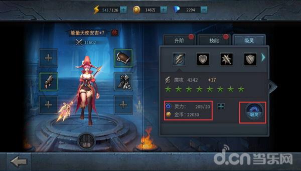 当拥有足够的金币和灵力时,点击吸灵按钮就可以对英雄的某一种属性进行吸灵操作。