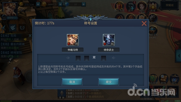3.设置结拜称谓:完成结拜任务后,队长可以设置结拜称谓(四个字),其他玩家可以设置自己的结拜名号(两个字)。