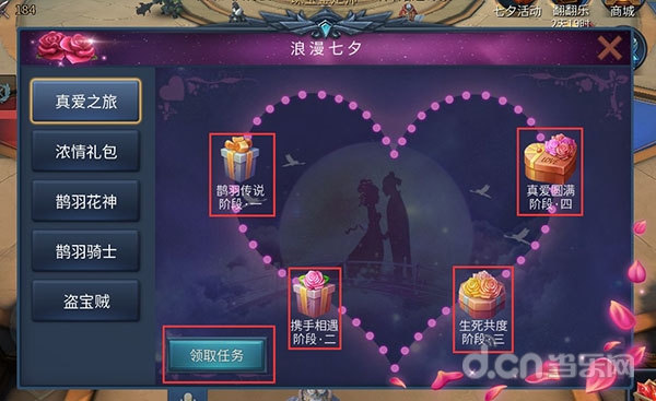 【真爱之旅】任务分为四个阶段,玩家每完成一个阶段的任务就可以可领取该阶段奖励。奖励内容如下: