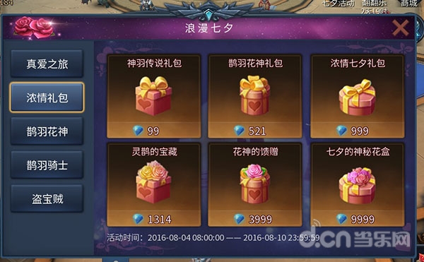活动期间,玩家可以在七夕节活动界面中,点击【浓情礼包】按钮打开活动界面。