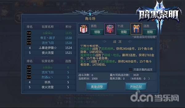 角斗场每周为一个赛季,每周二、四晚20:00-21:00,角色等级≥40级的玩家可以通过进入角斗场进行1VS1对决。活动开始时会提示玩家是否要参加角斗场活动,如果同意则被拉到角斗场地图中。进入场地后,就可以等待活动开启后进入到角斗场的专属场地,与其他玩家一较高下了。不管你是老司机还是小萌新,角斗场里总有你的一个位置,快来《暗黑黎明2》,与战友们一起享受游戏的快感和胜利的光荣吧!