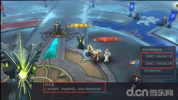 点击“领取任务”即可正式进入七罪副本。需选择进入的副本,23级可开启“饥饿之罪”副本,50级可开启“欲望之罪”副本。