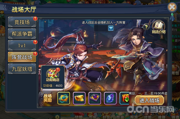 1、每周日、一、三、五 19:00阵营战场玩法开启,40级以上的玩家可进入。