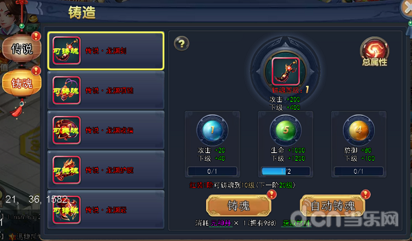 4、通过提升三种属性等级,可以提升铸魂等级,铸魂等级等于三种属性等级的最小值。