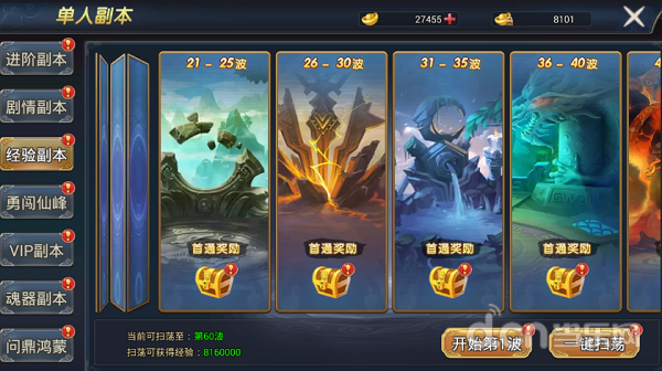 5) 经验副本每天不限制进入次数,每次进入都会从当天通关的最高关卡继续通关。