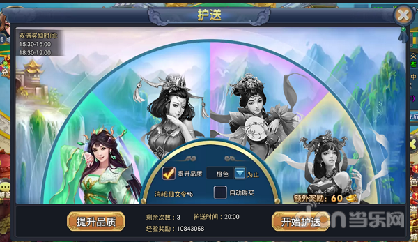4)使用并消耗背包中的“仙女令”,可对仙女品质进行提升,仙女品质越高,护送所获经验越多;