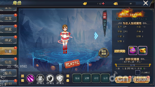 在这里可以看到自己仙童的信息,随着阶数的提高,可以幻化成对应阶数的仙童,如果不喜欢高阶仙童的形象,还可以自行幻化成比当前仙童阶数低的形象,仙童有五个技能,其中四个技能需要用到仙童升级书来升级还有一个是随着仙童等阶升级的,装备也有四种,分别是战纹、灵甲、命符和仙符,成长资质里,可以使用仙童资质丹和仙童成长丹来提高仙童属性,升级书和装备都可以通过跨服副本、剧情副本和世界首领等途径获取,仙童资质丹可以通过进阶副本获得,而仙童成长丹只能通过商城购买。