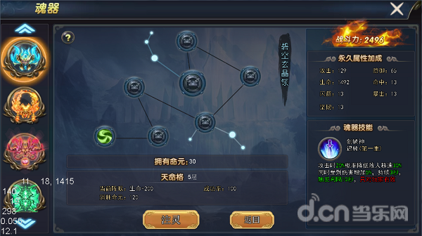 魂器八种每一种都有50层,小伙伴们可以通过魂器副本获得升级的材料,魂器丹、碧空神石、炎天神石、怨天神石、幽魇神石、圣莲神石、百雀神石、陨心神石和焚天神石。